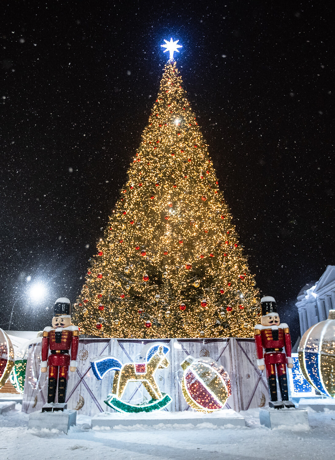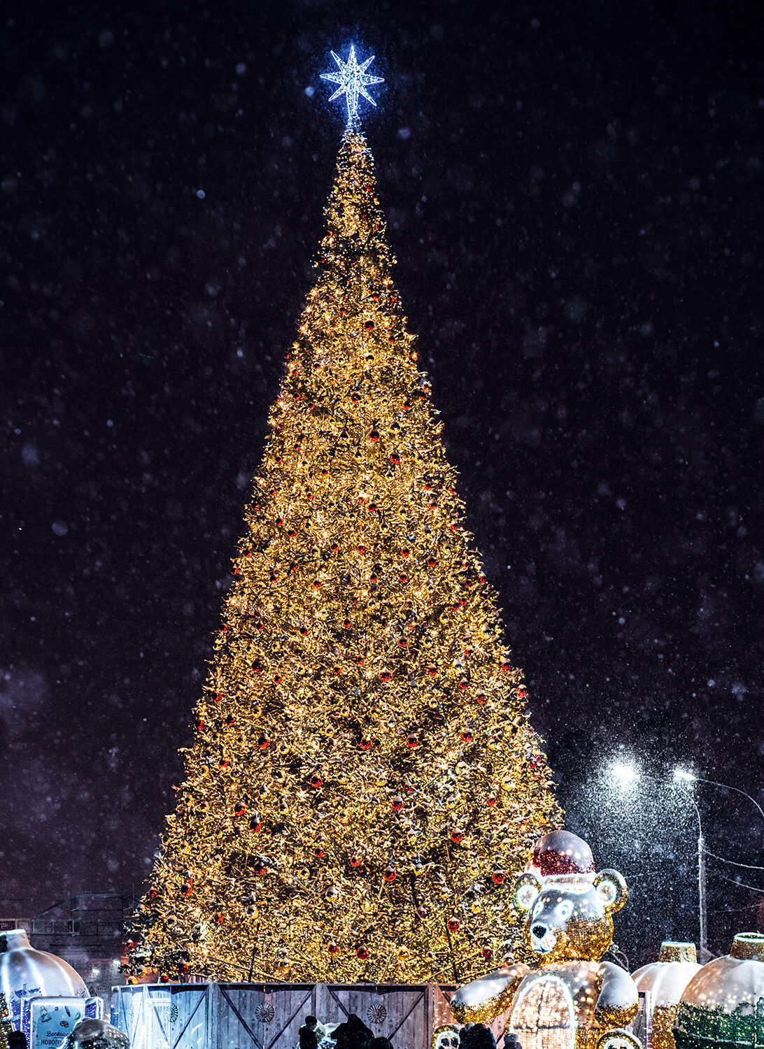 A magnificent New Year’s tree that decorated the central square of Nizhny Novgorod. This fir tree is unique: several kilometers of garlands were used to create it. The traditional décor looks incredibly impressive: the branches of the fir seem to glow from within. A decorative star with a cool glow crowns the tree.