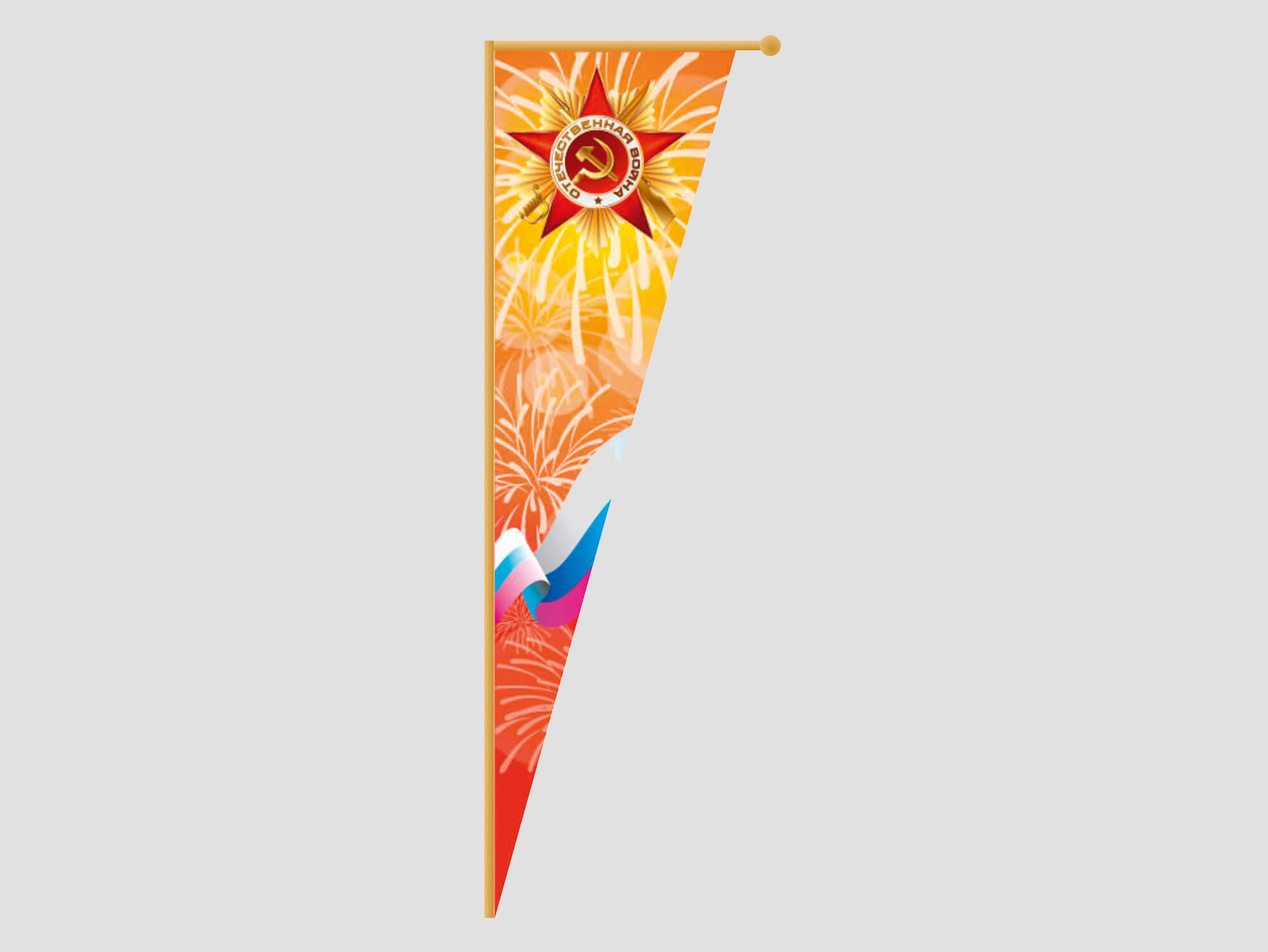 A console featuring traditional Victory Day symbols. Its triangular shape makes it ideal for decorating small spaces such as narrow streets, bridges, and park alleys.