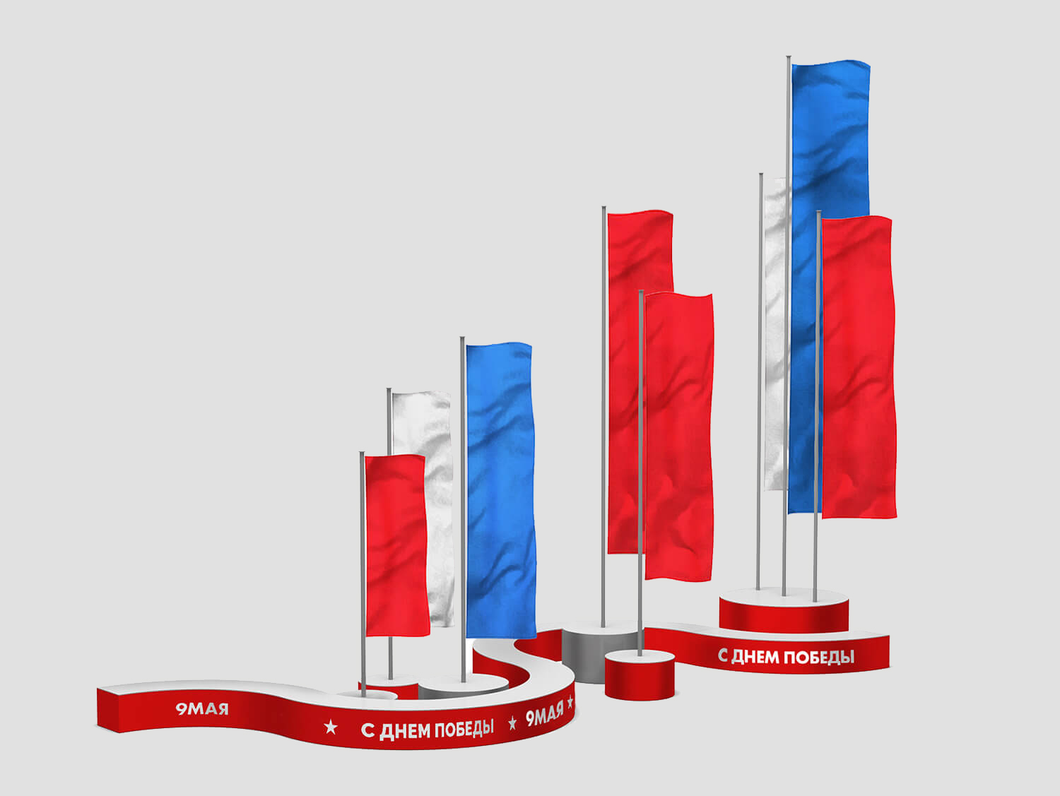 A tricolor flag composition, perfect for decorating small squares or parks. It can complement the festive design or serve as a standalone element. Flag compositions are versatile solutions for holiday city decorations.