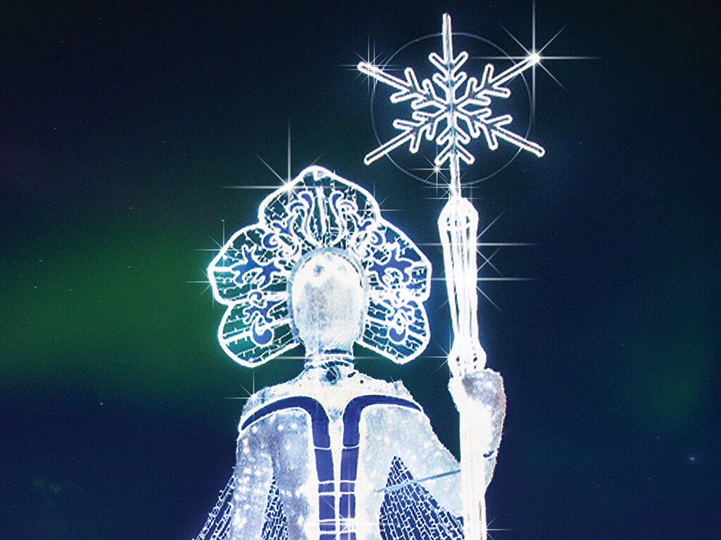 Giant figures are always a winning choice for city decor. The 10-meter-tall Snow Queen, complemented by an impressive LED canopy, can decorate an entire square. This striking art piece captivates residents and becomes the centerpiece of New Year’s festivities.