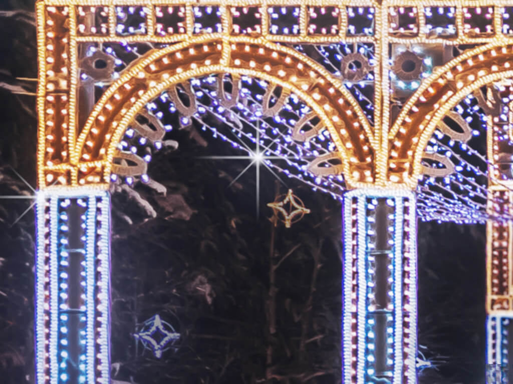 The glowing vaults of golden arches have decorated many cities in Russia. They look truly impressive: ordinary urban locations become transformed and begin to resemble a fairytale space, as if a magical castle has appeared. The arches can be complemented with any art objects, such as a sparkling tree or animal figures.