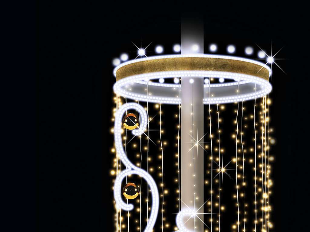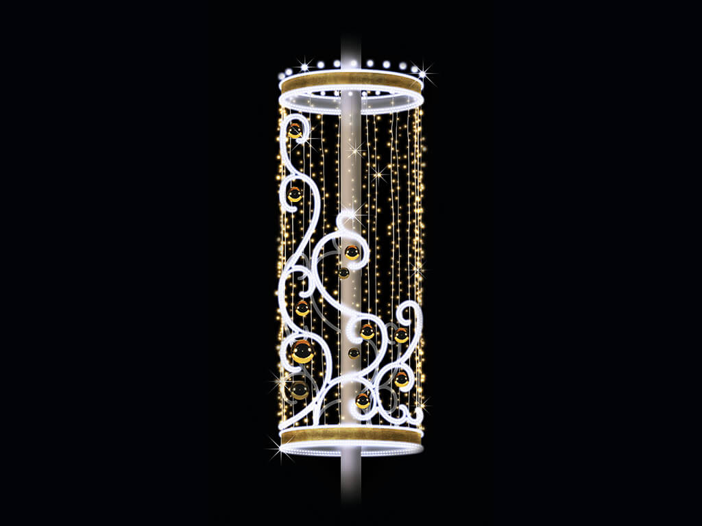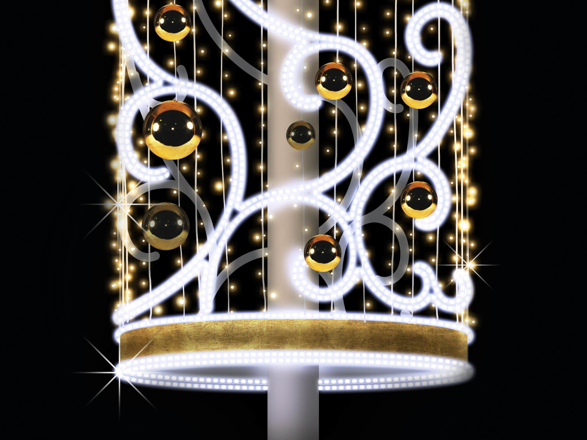 Consoles featuring an intricate pattern and decorative spheres are an eye-catching addition to a square or street. Their size ensures visibility even on larger thoroughfares. The combination of warm and cool light creates an attractive effect, making this console suitable for any festive concept.