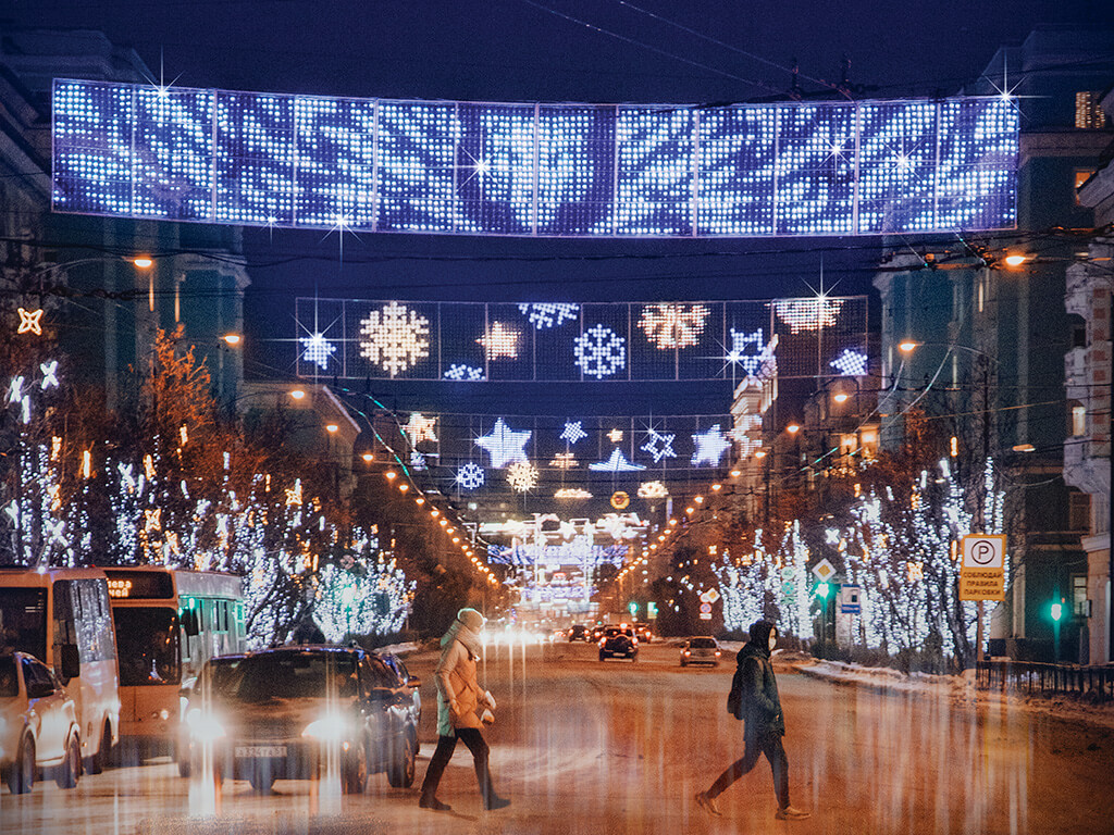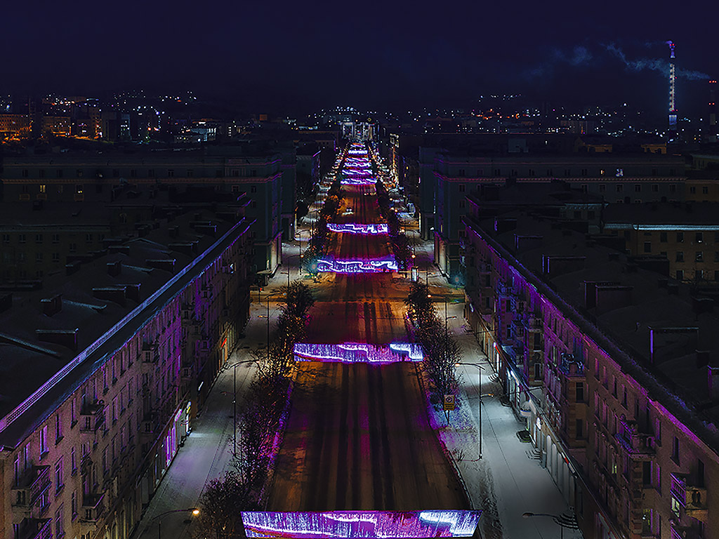 This unique overhead is capable of displaying video footage and images. The dynamic lighting enables the transmission of various information, such as graphics, announcements, or New Year greetings. The transmitted content can be changed at any frequency. Overheads like this can also be complemented with dynamic light consoles.