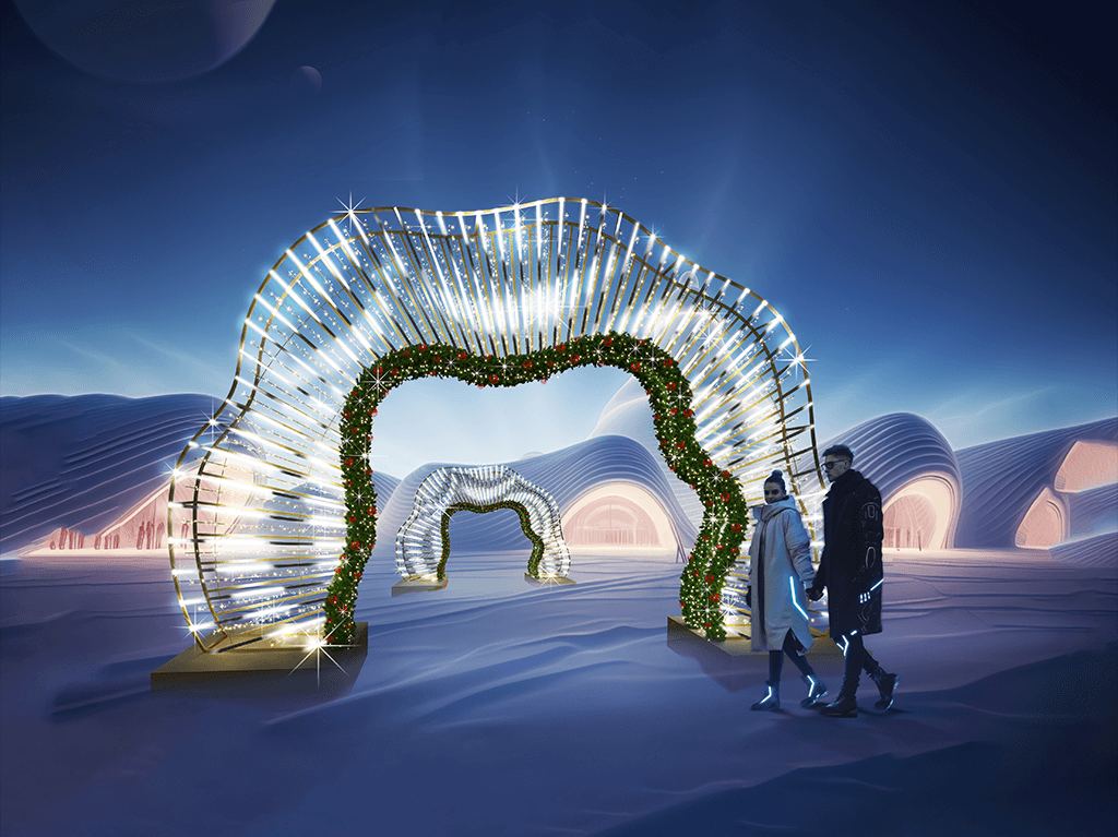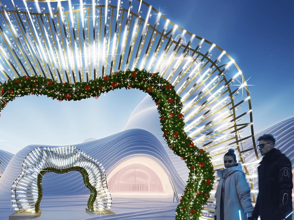 The graceful curves of the arch, the asymmetrical shape of the structure, and the metal inserts are how we envision the arches of the future. It has already arrived.