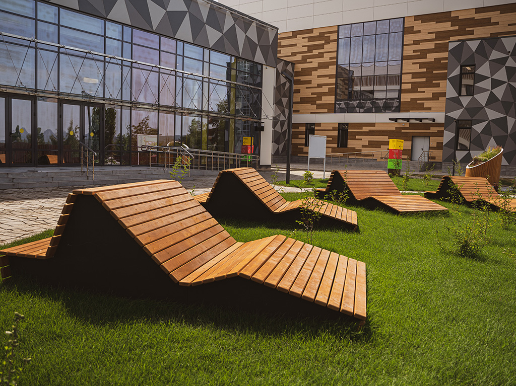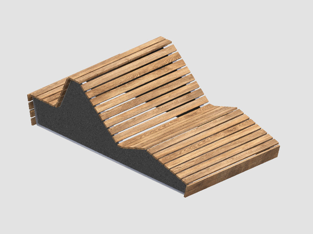 Profile Bench Type D includes modular benches and loungers. The structures in this series can be used both alone and together, and they can be connected like a constructor. Profile Benches are perfect for locations where comfortable resting areas need to be created: loungers offer a perfect place to sit and fully relax.