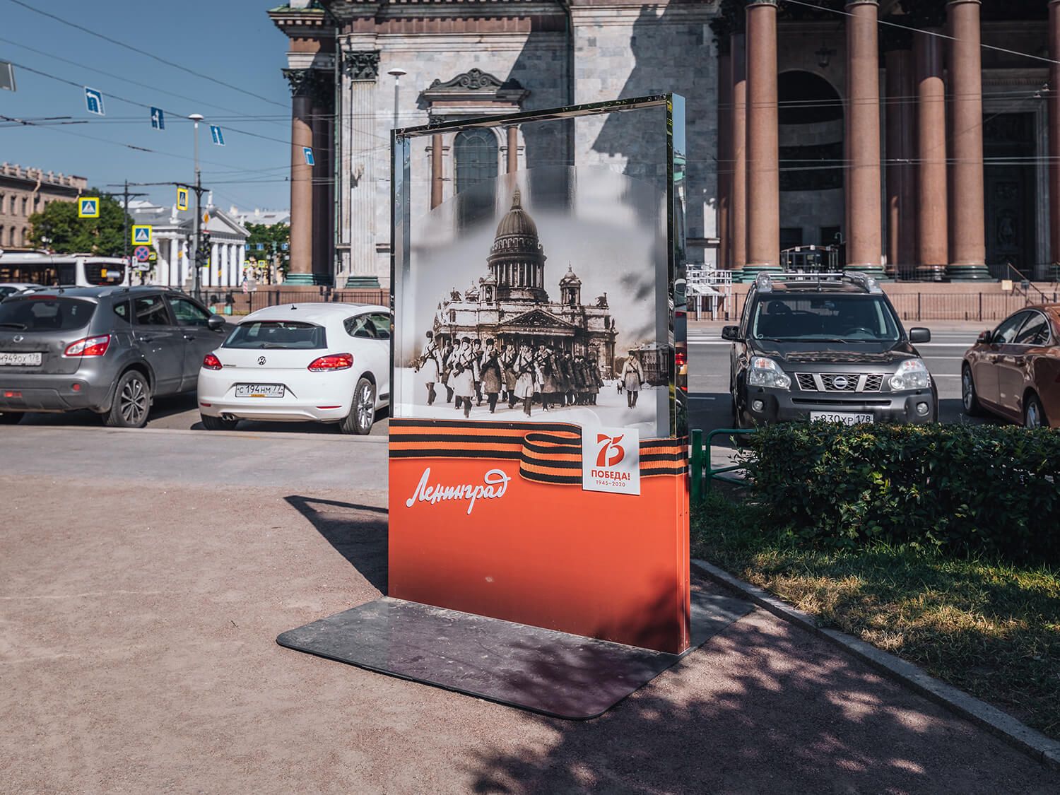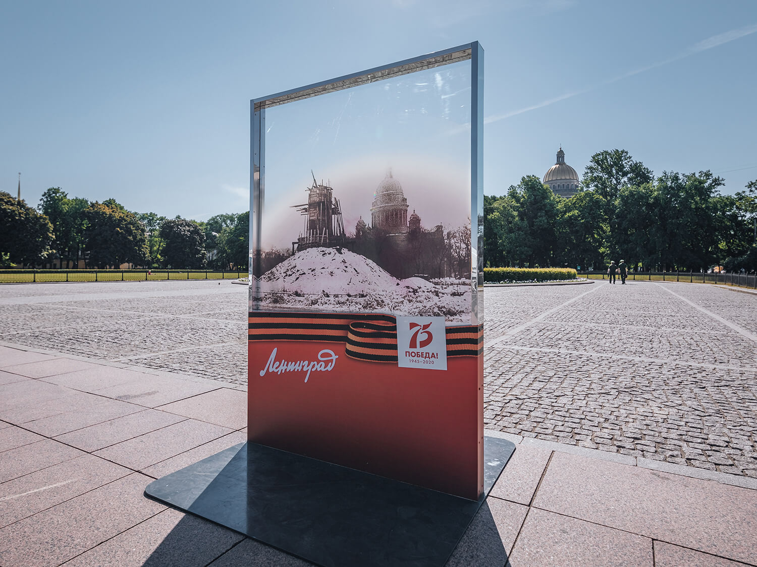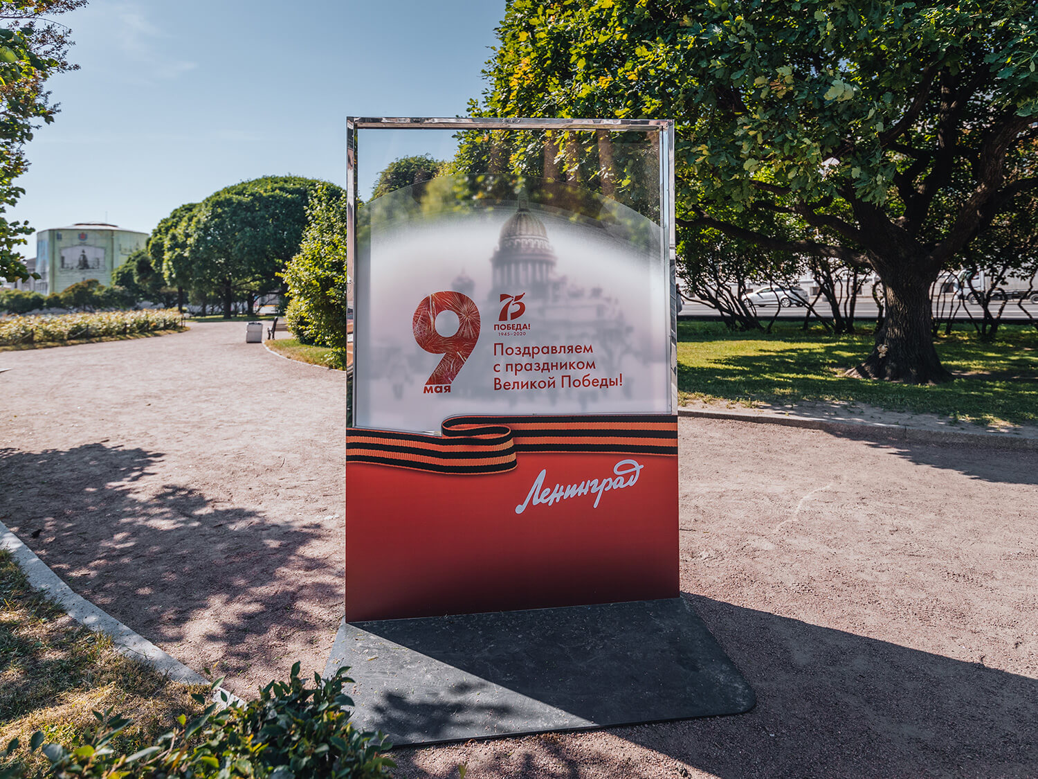 For the first time in the history of festive city decoration for the Victory Day and the ceremonial parade, unique “Photo Chronicles of Leningrad” were installed along Nevsky Prospect, near the Bronze Horseman, St. Isaac’s Square, and Alexander Garden, which displayed blockade-time photos of these landmarks. These special “windows into the past” allowed city dwellers to experience the spirit of the besieged city and compare wartime Leningrad with peaceful Petersburg of 2020. We take pride in the fact that our idea, from the design project development to production, was embodied on the streets of the northern capital.